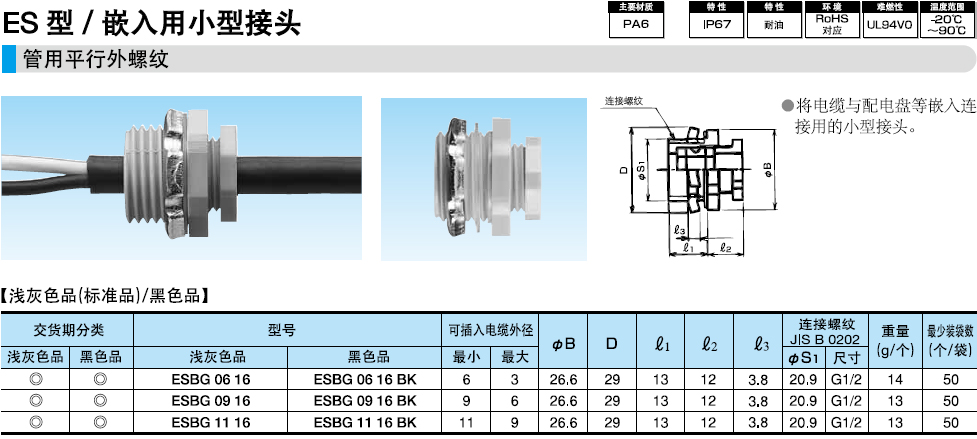 ·將電纜與配電盤等嵌入連接用的小型接頭。