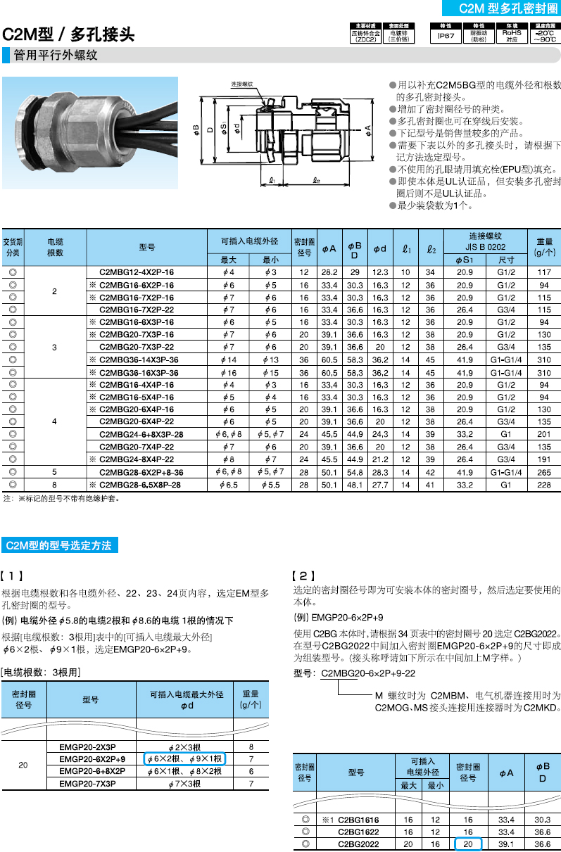 ·用以補充C2M5BG型的電纜外徑和根數的多孔密封接頭。