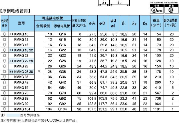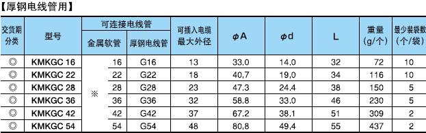 ·表中的[可連接金屬軟管]欄內的※號,代表KMS、KMV、KPF、KIC、KIH、KIV、KPBF、KUU、KCS、KMB、KIB、KM、KI。
