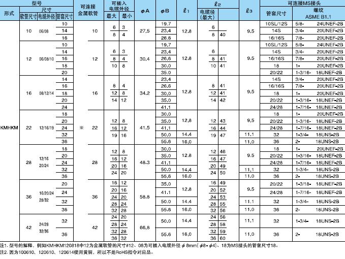 ·表中的[可連接金屬軟管]欄內(nèi)的※號,代表KMS、KMV、KPF、KIC、KIH、KIV、KPBF、KUU、KCS、KMB、KIB、KM、KI。