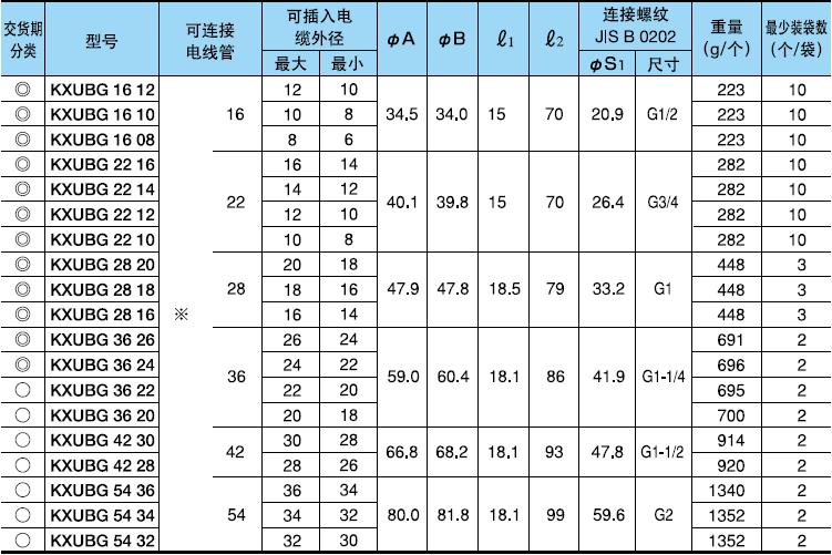 ·表中的[可連接金屬軟管]欄內的※號,代表KPF、KIH、KIC、KIV。