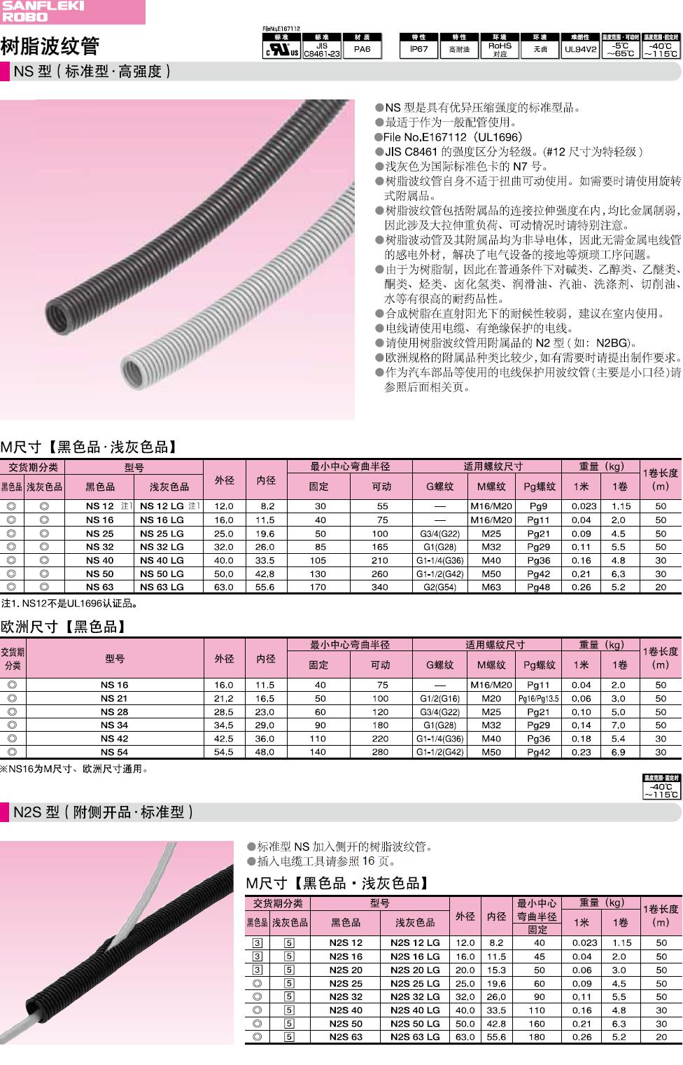·作為汽車部品等使用的電線保護用波紋管(主要是小口徑)請參照后面相關頁。