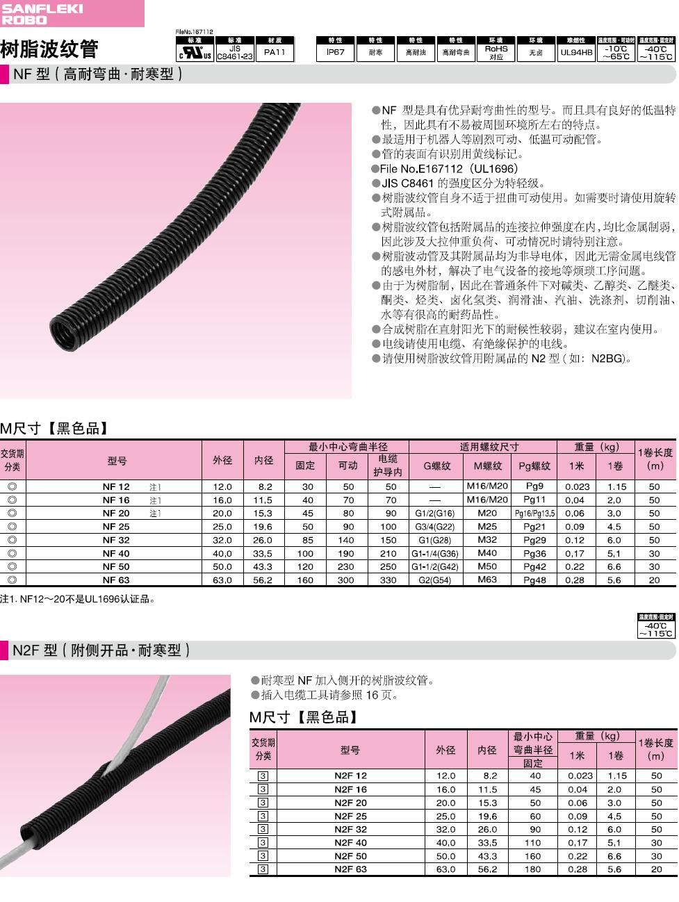 ·最適于小半徑彎曲配管、電纜護導(拖鏈)內配管、頻繁可動配管。