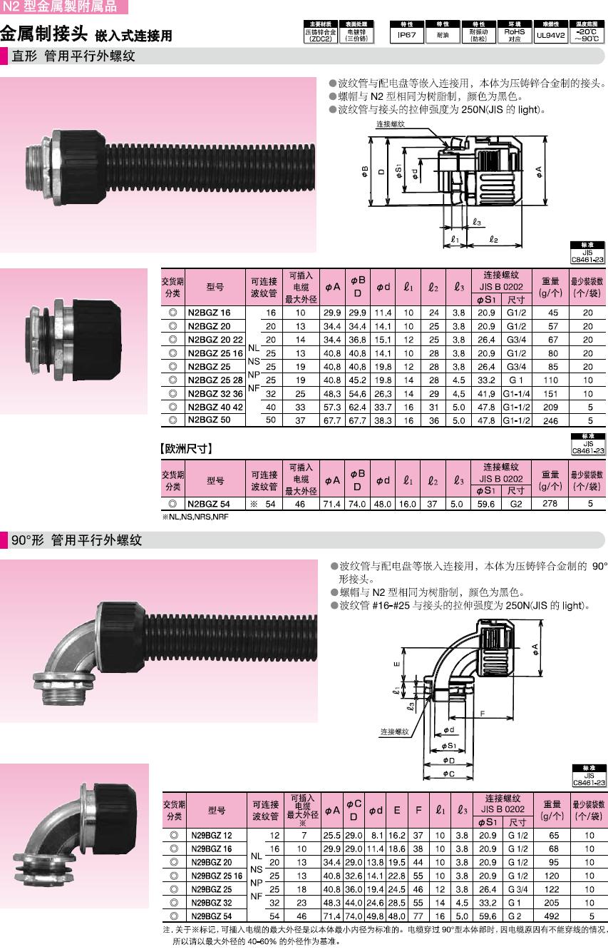 ·波紋管與配電盤等嵌入連接用,本體為壓鑄鋅合金制的接頭。