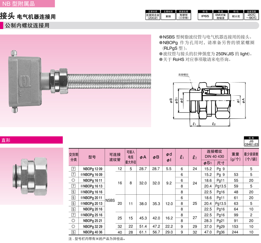 ·NSBS型樹脂波紋管與電氣機器連接用的接頭。