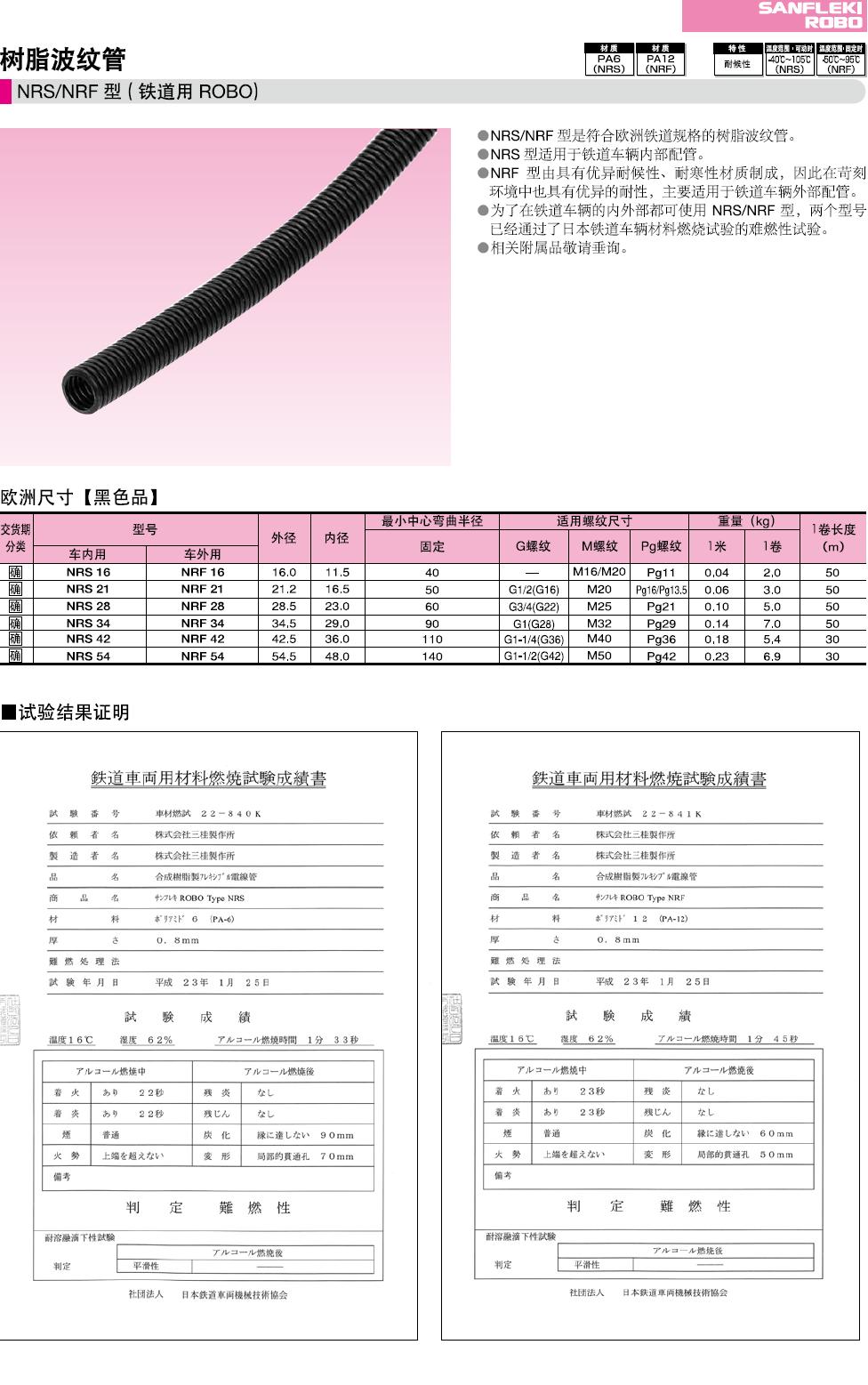 ·NRS/NRF型是符合歐洲鐵道規格的樹脂波紋管。